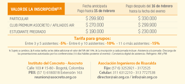 Dirección: Calle 103 No. 15-80 | Bogotá, Colombia Tel. PBX (571) 618 0018 FAX:(571) 636 1683 Asocreto Virtual es un producto de ASOCRETO